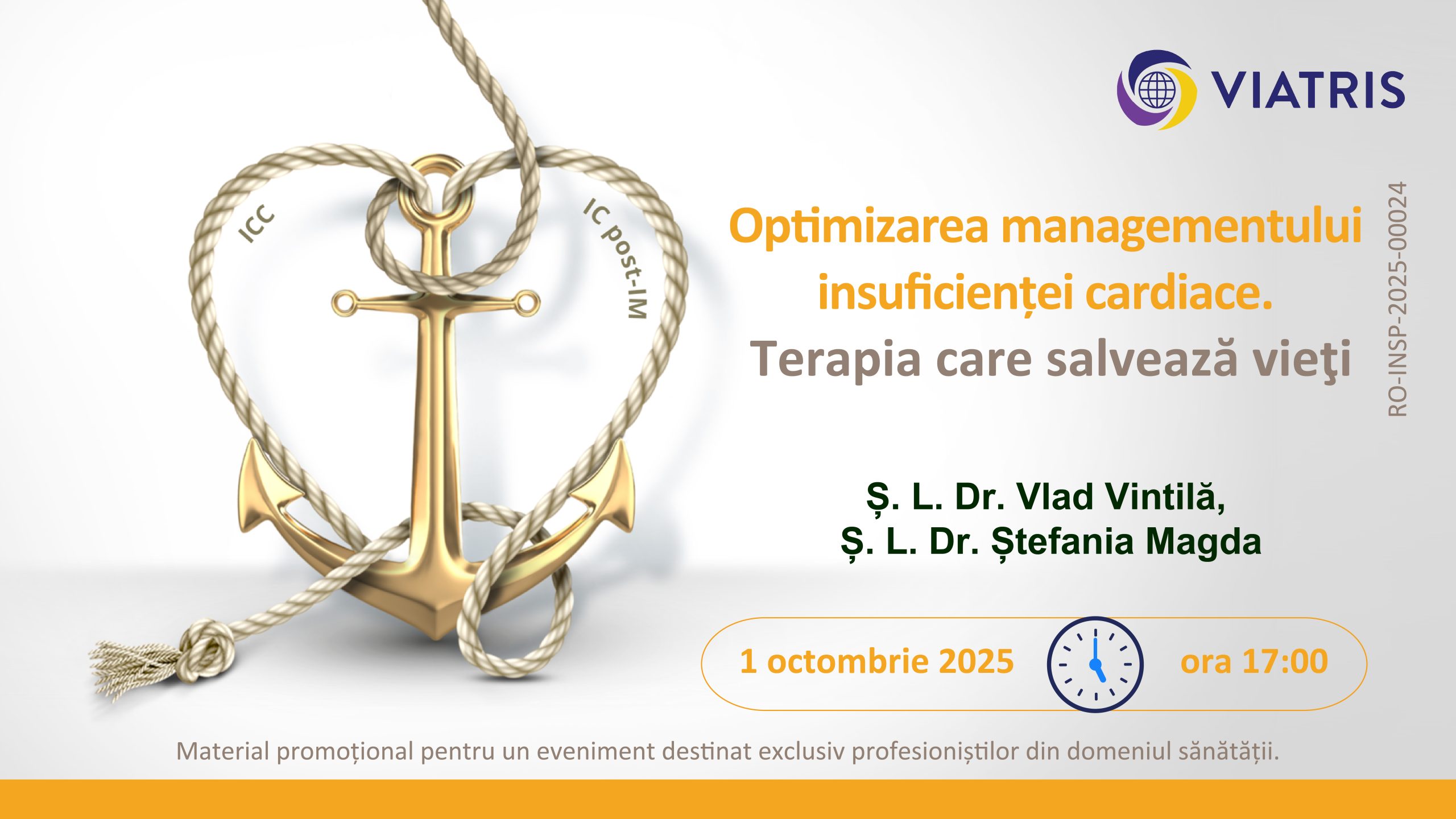 Vă invităm la webinarul cu titlul “Optimizarea managementului insuficienței cardiace. Terapia care salvează vieţi“, eveniment pe care ni-l dorim interactiv și aplicat, dedicat optimizării managementului insuficienței cardiace, cu accent pe rolul dovedit al eplerenonei în tratamentul pacienților cu disfuncție ventriculară stângă.